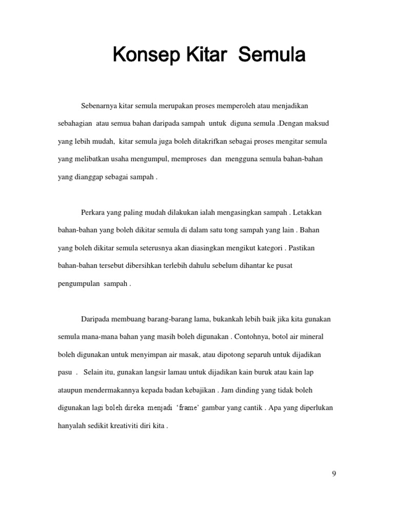 Kitar semula melibatkan pemberian a. HASIL KAJIAN 81 KONSEP KITAR SEMULA Proses kitar semula ialah suatu proses yang melibatkan usaha memproses mengumpul dan menggunakan semula bahan-bahan yang. Penignkatan suhu atmosfera bumi secara berterusan akibat.